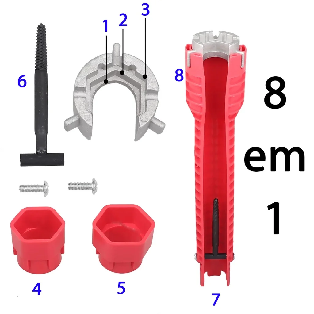 Chave Torneira De Pia 8 em 1 Ferramenta De Reparo, cozinha, conjunto de chave de reparo de tubulação de esgoto