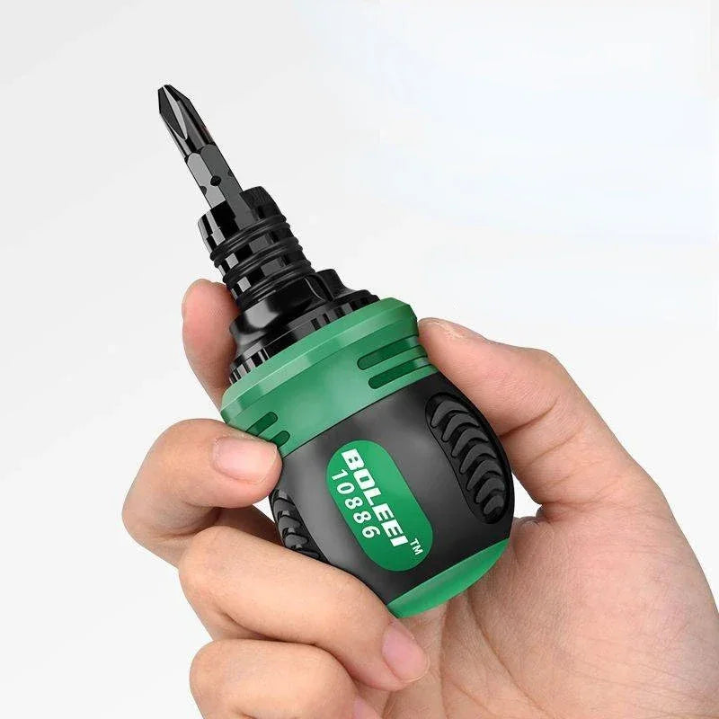 A small figure is of great use. 1. Retractable blade 2. Short and thick handle 3. Bidirectional ratchet 4. Double end use 5. Forged with chrome vanadium steel 6. Magnetic suction blade